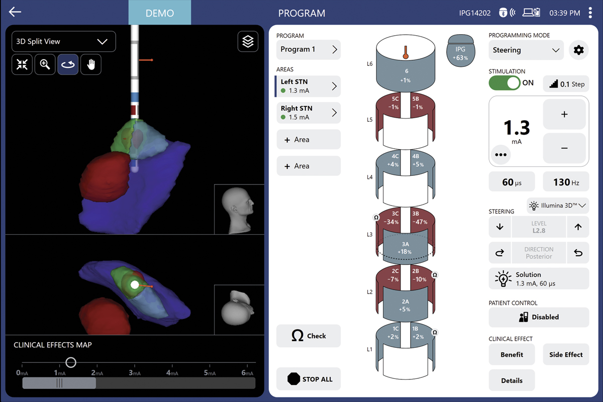 Mit der bildgestützten Programmierung ist das Ende der technischen Innovation noch nicht erreicht. Boston Scientific hat einen automatischen Algorithmus (Illumina 3D™ Technologie) entwickelt, der die optimale Einstellung der Stimulation in wenigen Sekunden errechnet. Ärzt:innen legen zuvor in der Software fest, welche Hirnstruktur das Ziel der Stimulation sein soll und welche Strukturen vermieden werden sollen. Mit diesen Informationen errechnet der Algorithmus die optimale Einstellung vollautomatisch. Selbstverständlich muss dieser Programmiervorschlag von Ärzt:innen überprüft und die Stimulation auch von diesen gestartet werden. In den USA wird der Algorithmus schon in vielen Kliniken zur Einstellung des Hirnschrittmachers verwendet. In Deutschland ist die Software jetzt auch verfügbar.